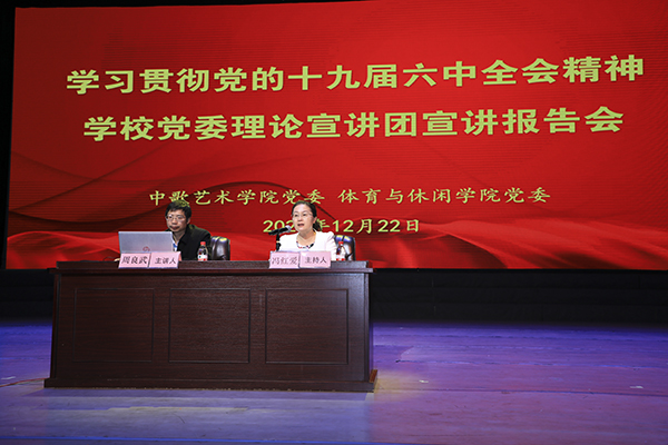 12月22日下午,公司党委理论宣讲团成员、马克思主义公司副经理周良武副教授在实验剧场,为太阳成集团tyc9728的全体教职工和员工党员代表,做了一场党的十九届六中全会精神专题宣讲报告会。中歌太阳成集团tyc9728党委书记冯红爱主持专题宣讲报告会。