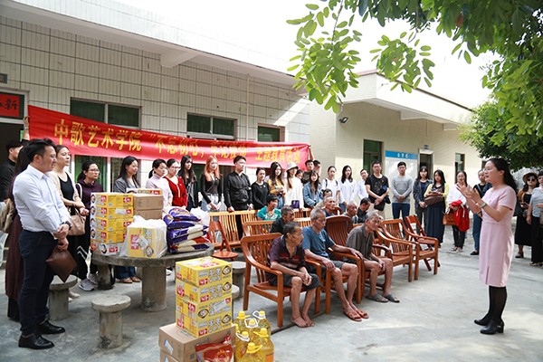 到达敬老院后,党员们争相拿起扫帚、抹布等工具打扫清洁卫生,院子里立即干净整洁了许多。随后,党员们主动搀扶行动不便的老人们从房间出来,与他们亲切交谈,了解他们的身体和生活状况,倾听他们的心声。冯红爱代表公司送给老人们慰问品,并致以诚挚的问候和祝福,还提议师生们给老人们表演节目。赵密密、高鲲老师以及员工们主动上场演唱和跳起舞蹈,精彩而又满怀深情的表演,让平日里孤独寂寞的孤寡老人感受到了浓浓的真情,露出幸福的笑容,整个敬老院沉浸在温馨的气氛中。