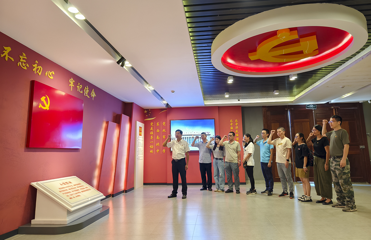 最后,在陈瑸廉政史迹展览馆影视厅内,参加活动的全体党员在公司党委书记欧卫军带领下重温入党誓词,面对党旗庄严宣誓。