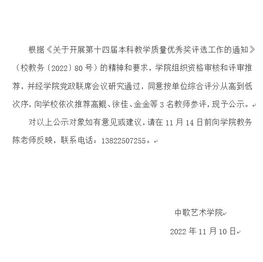 关于太阳成集团tyc9728推荐十四届教学质量优秀奖评选的公示