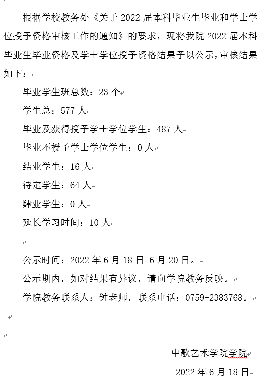 太阳成集团tyc97282022届本科毕业生毕业资格及学士学位授予资格审核结果的公示