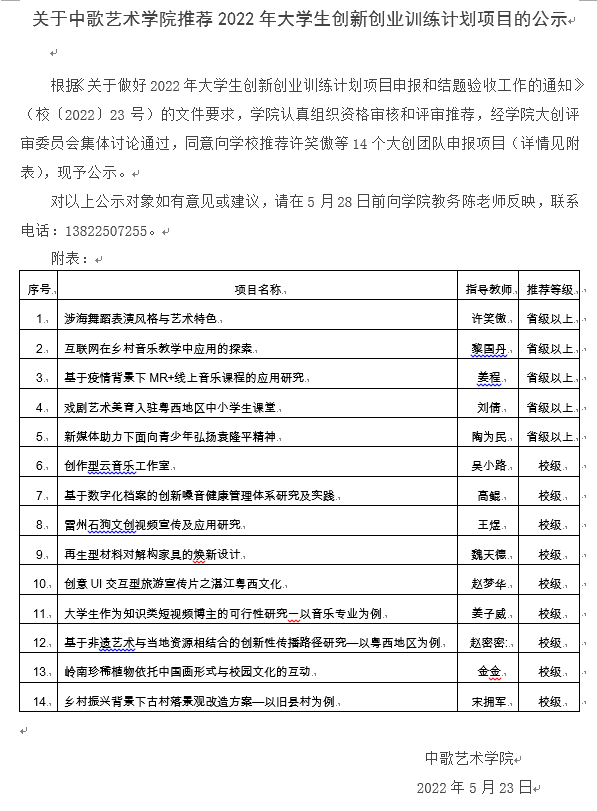 关于太阳成集团tyc9728推荐2022年老员工创新创业训练计划项目的公示