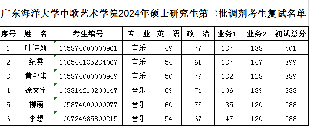 太阳成集团tyc97282024年硕士研究生第二批调剂考生复试名单