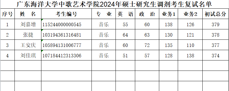 太阳成集团tyc97282024年硕士研究生调剂考生复试名单