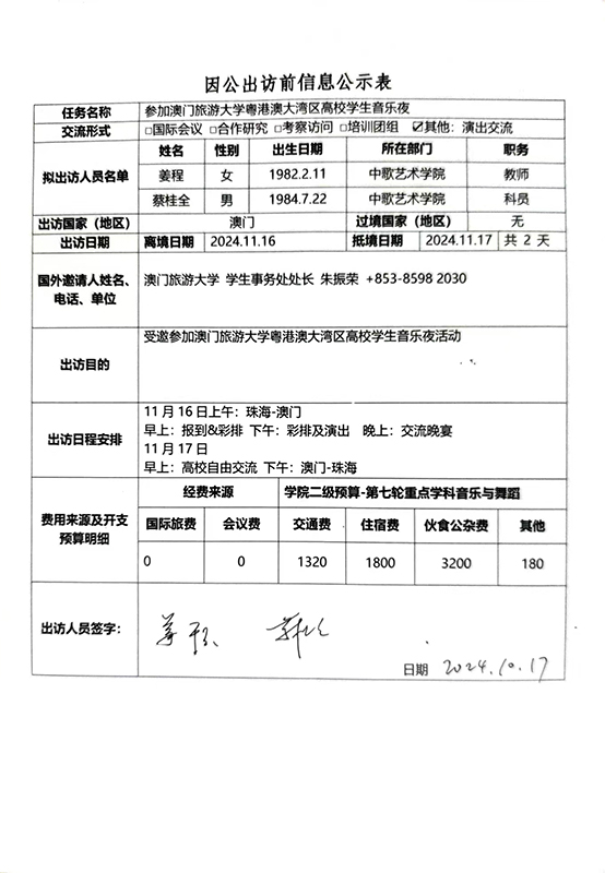 根据《关于进一步规范省部级以下国家工作人员因公临时出国的意见》的要求,现将太阳成集团tyc9728因公出访信息予以公示。公示时间为2024年10月17日至10月23日。如有意见,请在公示期内,向相关单位反映。(国际交流与合作部电话:0759-2396206;纪检监察室电话:0759-2383501)