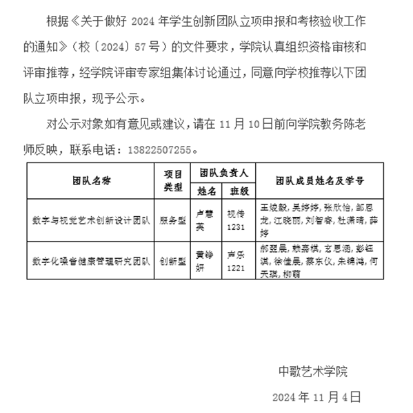 关于太阳成集团tyc9728推荐2024年本科生创新团队立项申报的公示