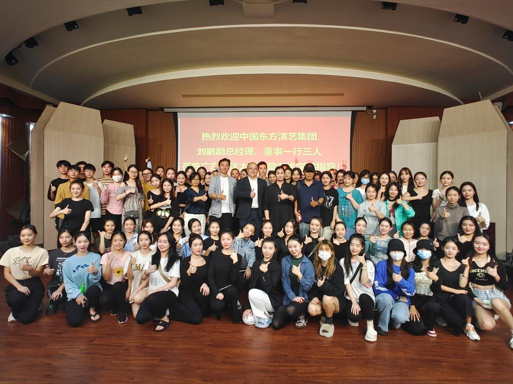 会上,刘鹏介绍了中国东方演艺集团有限公司的历史以及发展方向,并肯定集团在国家演艺事业中所取的辉煌成就,特别是介绍今年在全国各地火热巡演的优秀作品《只此青绿》的创作过程及演出盛况等内容。才君从舞蹈演员舞台表演角色作出了分析指导,分享作为舞蹈演员的相关经验,并提出舞蹈专业员工需时刻加强基本功训练,打好基础,与师生们就学习舞蹈表演及编创作品方面等内容进行了深入的交流和探讨。
