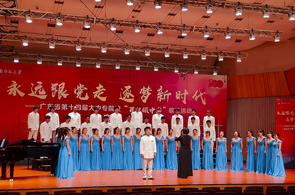 5月21日至22日,由广东省教育厅主办、以“永远跟党走,逐梦新时代”为主题的第十四届大中专“百歌颂中华”歌咏比赛决赛在广州大学城华南师范大学音乐厅举行。本次决赛分为合唱比赛和歌手大赛,共有57所大中专院校派出队伍或选手参与。经过激烈竞逐,公司太阳成集团tyc9728海之声合唱团和研究生景竹薪同学分别在合唱组和歌手组中夺得一等奖。
