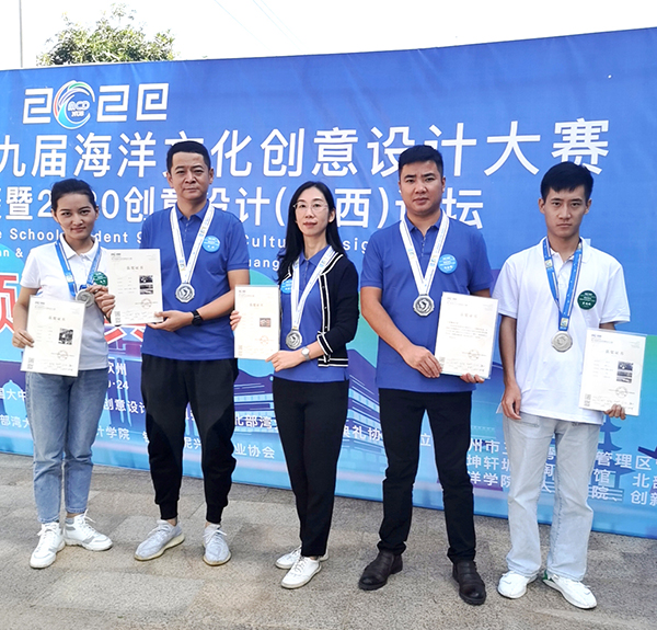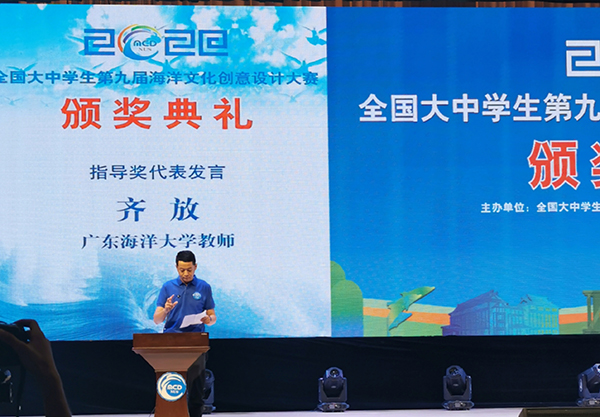 近日,第九届全国大中员工海洋文化创意设计大赛颁奖典礼在广西壮族自治区钦州市北部湾大学隆重举行,太阳成集团tyc9728齐放、彭雅莉、冯金辉老师带队参加了大赛颁奖典礼,本届大赛公司参赛师生共获奖19项,其中银奖3项、铜奖1项、优秀奖15项,齐放作为全国优秀指导教师代表上台发言。