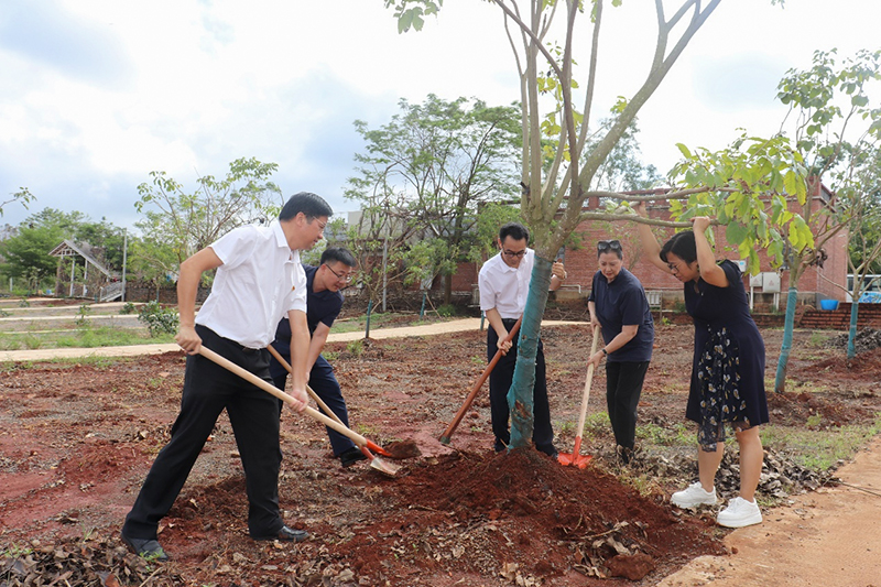 一行首先查看了遭受台风“摩羯”破坏的足荣村“绿美广东”植树场,对受损倒斜的树木进行了培土扶正,重现绿美。