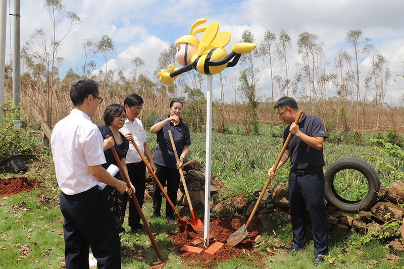 最后,伍彬队长和公司一行举行了蜜蜂和无人机文创雕塑群筑立仪式。