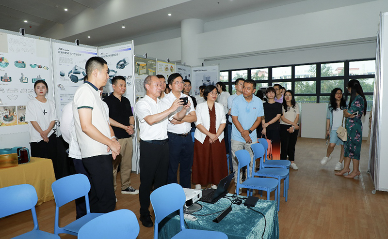 开幕式后,一行参观了毕业设计展,展览现场精彩纷呈,视觉传达设计专业巧妙融合海洋文化与现代设计语言,环境设计专业聚焦乡村振兴呈现美丽乡村建设方案,产品设计专业立足"中国智造"展示科技与人文的完美结合,美术学专业则通过画笔记录南路革命历史。