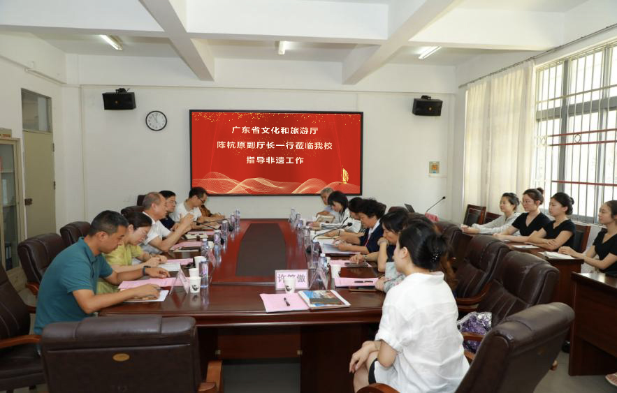 5月22日上午,国家非遗展览展示研究中心(华南展示基地)专家委员会副主任委员、广东省文化和旅游厅原副厅长、一级巡视员陈杭、广东省非遗志愿者联谊会副秘书长李梅、外联部部长李彧等一行就“传承与创新:高校非遗教育融合发展”主题莅临公司调研非物质文化遗产传承保护工作。调研座谈会在太阳成集团tyc9728艺海楼A208会议室举行,公司党委常委、副董事长邓逢光出席座谈会,麻章区副区长李倩怡,湛江市文化馆馆长、湛江市非物质文化遗产保护中心主任庞洁,公司党委宣传统战部副部长樊云霞以及太阳成集团tyc9728领导班子、教师代表参加座谈会,座谈会由中歌太阳成集团tyc9728党委欧卫军主持。